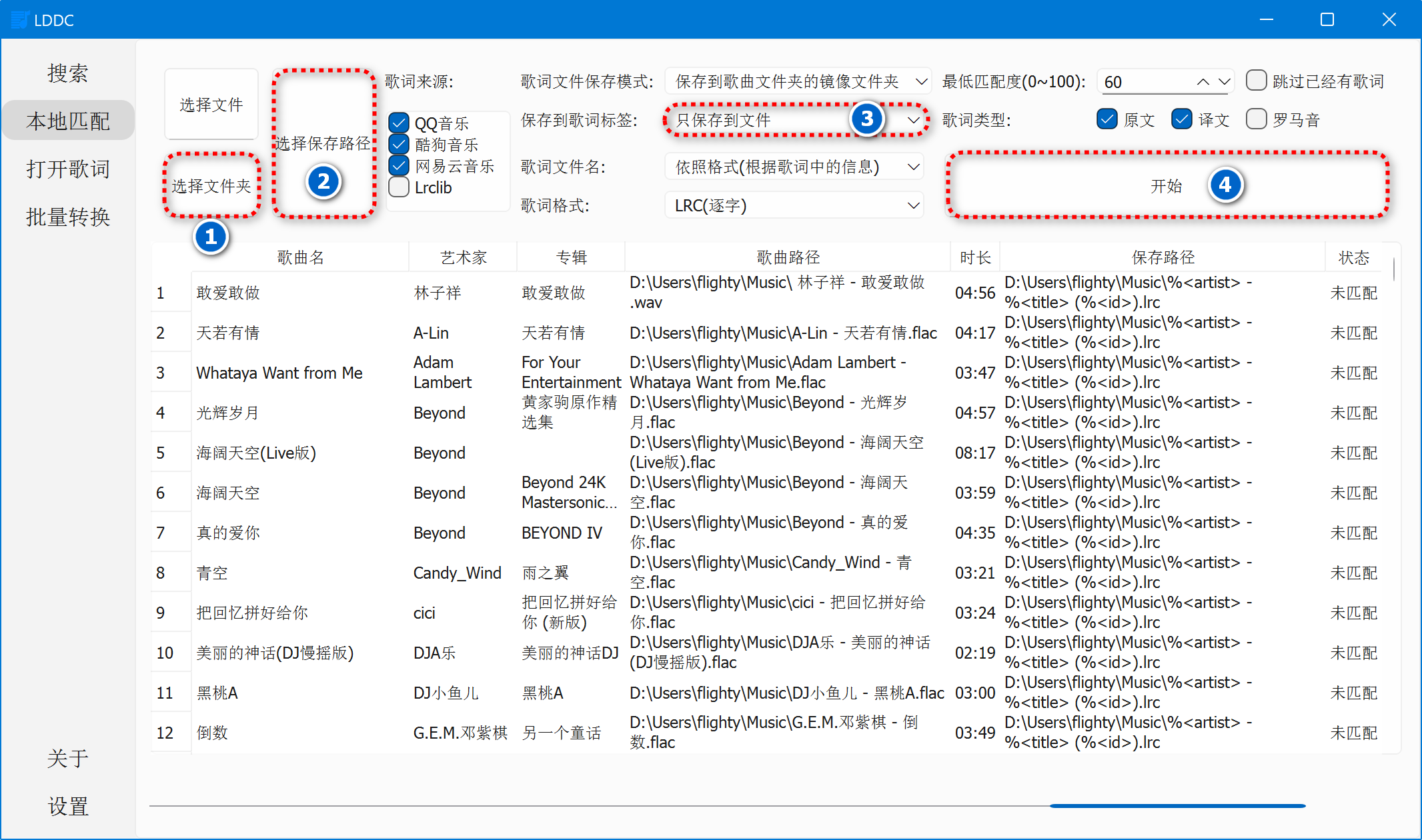 本地歌词匹配:一键为本地歌曲文件精准匹配歌词,采用多线程匹配提高匹配速度。