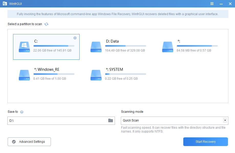 WinfrGUI v1.2.2 免费数据恢复工具 可找回 SSD/HDD/USB/内存卡丢失的文件