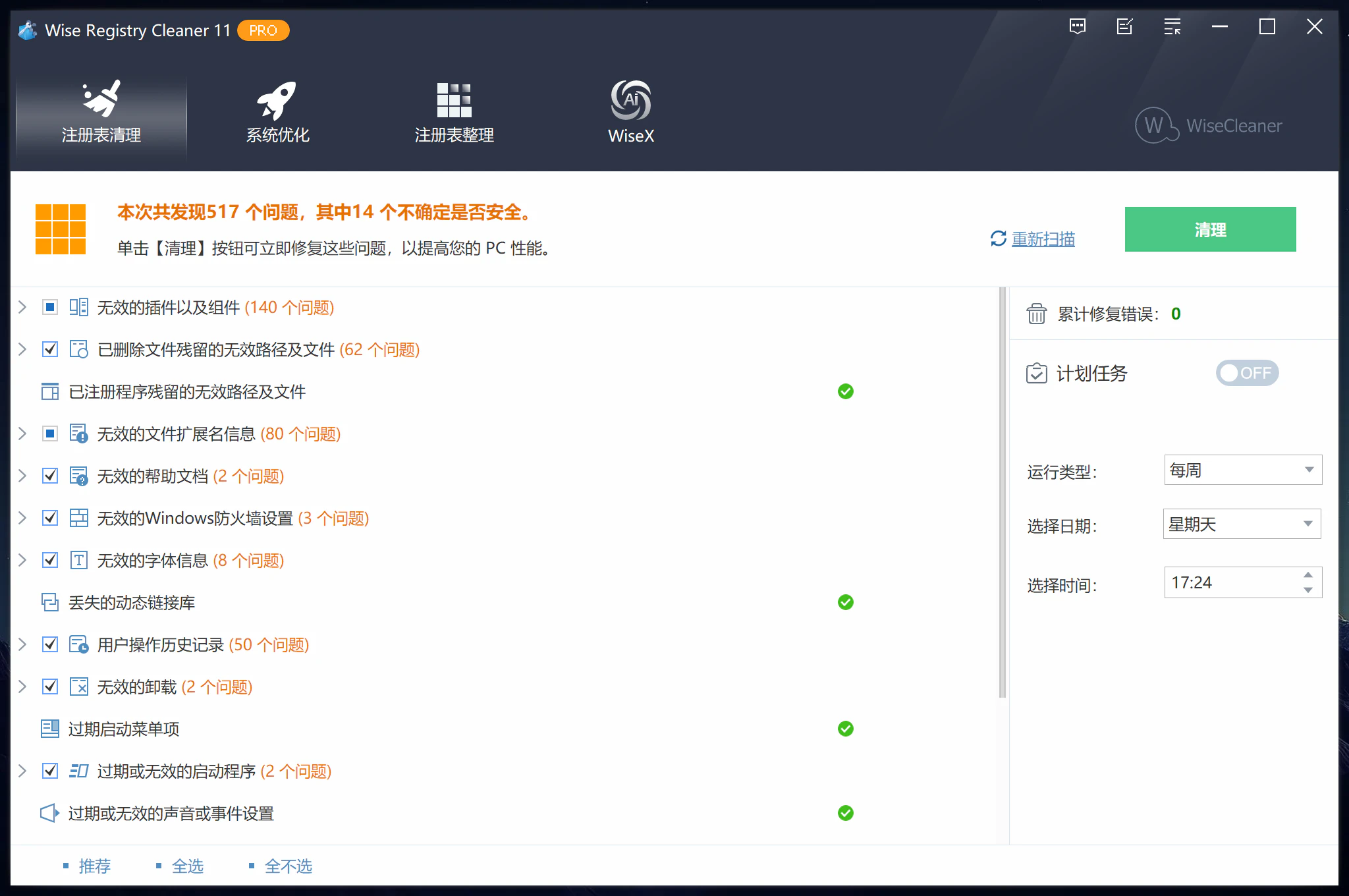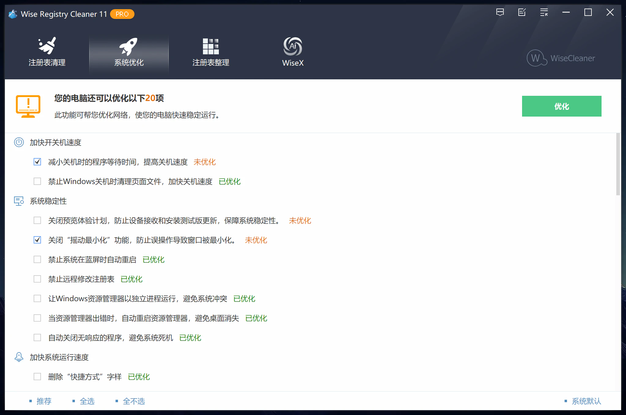 Wise Registry Cleaner v11.3.1.733 x64 精简激活版 小巧的注册表清理优化工具
